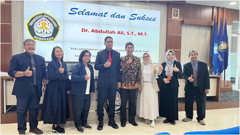 Abdullah Ali, pria yang biasa disapa Ali ini lahir di Kota Tidore Kepulauan Provinsi Maluku Utara telah berhasil mempertahankan naskah disertasinya yang berjudul Makna Ruang Luhur Pada Kampung Adat Kranggan di Kota Bekasi, melalui sidang tertutup promosi doktor yang dipimpin langsung oleh Prof. Dr. Ir. Atiek Suprapti, MT., pada tanggal 27 Februari 2025 dengan nilai Cumlaude. Ali dinyatakan lulus sebagai doktor yang ke-95 pada Program Doktor Ilmu Arsitektur dan Perkotaan, Jurusan Arsitektur, Fakultas Teknik, Universitas Diponegoro (UNDIP). Naskah disertasinya telah diuji oleh Prof. Dr. Ir. Suzanna Ratih Sari, M.M.,M.A, dan Dr. Agung Dwiyanto. MSA, selaku tim penguji internal UNDIP dalam rangkain sidang disertasi yang dimulai dari sidang proposal, sidang kelayakan, hingga sidang tertutup promosi doktor. Selain itu, Prof. Dr Ir. Ni Ketut Agusintadewi.,S.T.,M.T Ph.D., juga ikut terlibat dalam menguji naskah disertasinya sebagai penguji eksternal dari Universitas Udayana Bali. Naskah disertasinya merupakan hasil dari serangkaian proses penelitian yang dibimbing langsung oleh Prof. Dr. Ir. R. Siti Rukayah, M.T., selaku promotor dan Dr. Ir. Agung Budi Sardjono, MT., selaku Co-promotor, baik di lokasi penelitian maupun di studio pada Program Doktor Ilmu Arsitektur dan Perkotaan UNDIP.