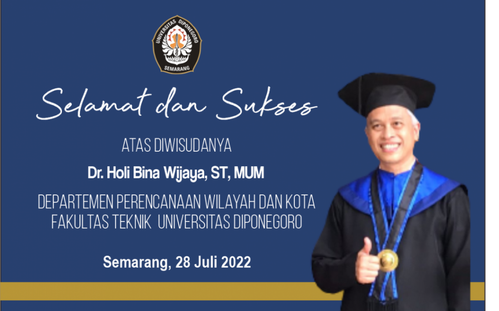 Program Doktor Ilmu Arsitektur dan Perkotaan, Fakultas Teknik, Universitas Diponegoro Dr. Margareta Maria Sudarwani, ST, MT Judul Disertasi : Kesadaran Kolektif dalam Merawat Ruang Kawasan Pecinan di Kota Lama Lasem Penguji: Prof.Ir. Bakti Setiawan, MA, PhD. (Universitas Gajah Mada) Dr.Ir. Agung Budi Sardjono, MT (UNDIP) Dr.Ars. Ir. Rina Kurniati, MT (UNDIP) Prof.Dr.Ir. Atiek Suprapti, M. […]