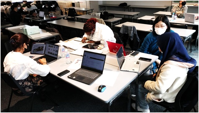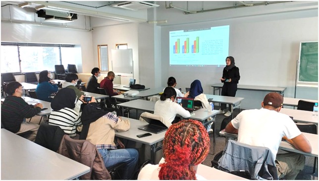 Salah satu kegiatan adalah Joint Supervisor dalam Tugas Akhir mahasiswa S1 Arsitektur Reviana, Peserta dari Indonesia, sedang memaparkan Proposal Tugas Akhir